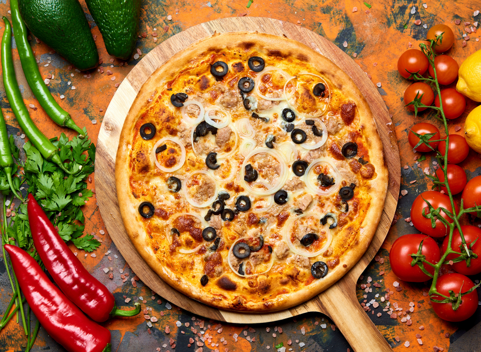 sos de rosii,mozzarella,ton,masline,ceapa rosie